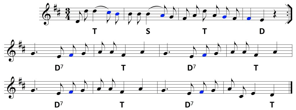 Zwrot melodyczny – ten dawniej używany – bazował w gruncie rzeczy na materiale dźwiękowym dwóch zasadniczych akordów: czterodźwięku septymowego i trójdźwięku tonicznego, D7T (zobacz słowa Śmiertelny, Król nad wiekami! i następne).