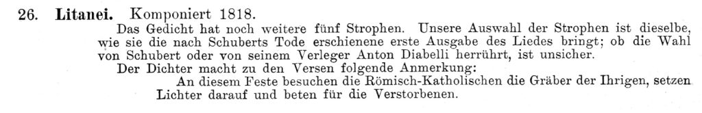 Co ciekawe, są to zaledwie dwie z pięciu zwrotek oryginalnego tekstu – dwie najczęściej wykonywane. Wspomina o nich nota redakcyjna, zamieszczona w zbiorze nut F. Schuberta, wydanych nakładem C. F. Petersa: