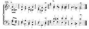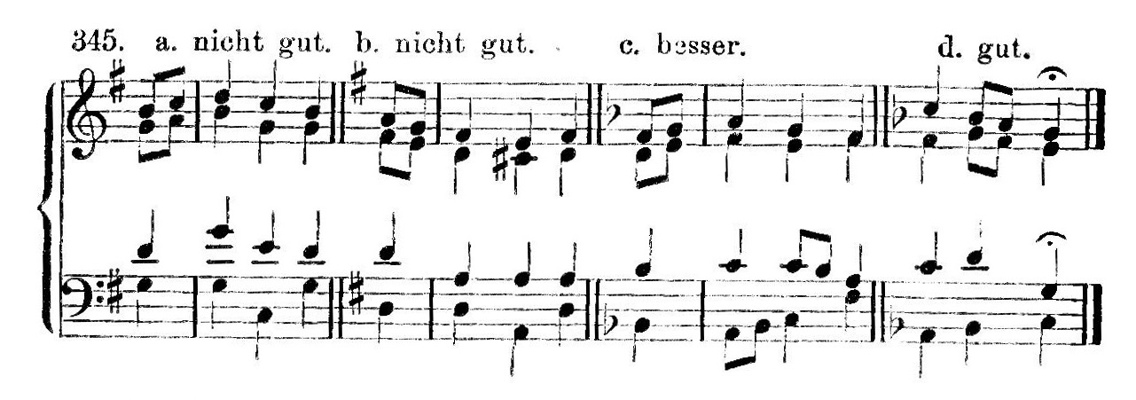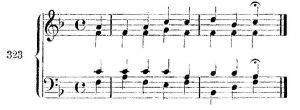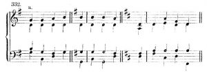 Stosować również można trójdźwięki w II przewrocie, choć sprowadzają one często akordy przejściowe (’Scheinakkorde’)