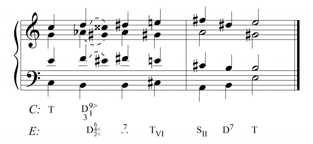 Przyznaję, że jest to ujęcie nieco naciągane. Ale z tych samych powodów stanowi solidny argument za uznaniem enharmonii jedynie jako „narzędzia technicznego” w modulacji diatonicznej i chromatycznej, a nie jako odrębnego sposobu.