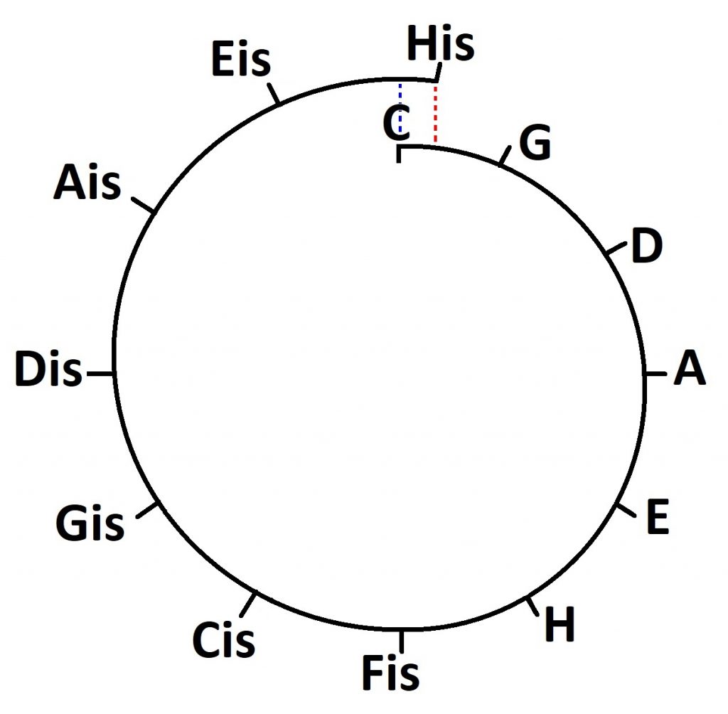 (czyli: im większa różnica znaków przykluczowych), tym mniej dźwięków wspólnych występuje między nimi, np. w C-durCis-dur nie ma żadnego.