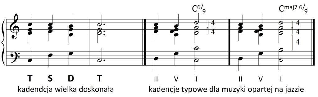 Struktury kwartowe „lubią się” z harmoniką jazzową (i odwrotnie). Dla porównania zamieszczam zestawienie typowej kadencji w muzyce klasycznej i rozrywkowej:
