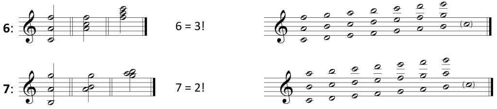 Podobnie rzecz ma się z odległością o sekstęo septymę: akordy stanowią „odbicie” współbrzmień tercjowychsekundowych – co najłatwiej zaobserwować, patrząc na ich przewroty: