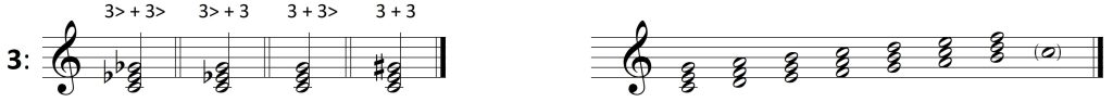 Każdy harmonista wie, że gama i triada (akordy) oddziałują na siebie wzajemnie. Opisawszy więc prawidła rządzące akordami, wyjaśniliśmy również możliwość alternatywnego rozpisania materiału dźwiękowego gamy. Porównanie tych możliwości przedstawia się następująco: