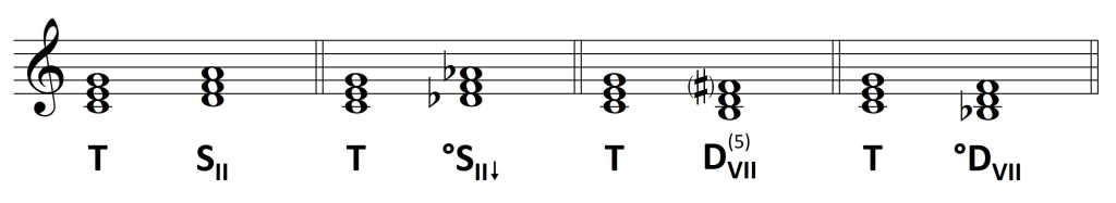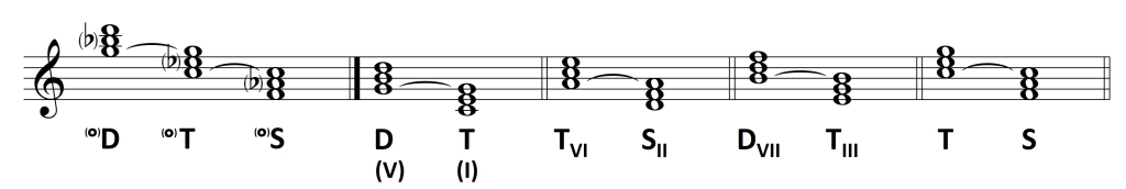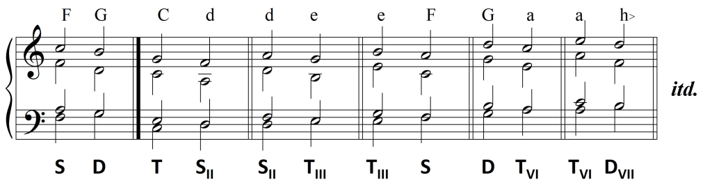Kto więc zna choćby podstawowe zasady łączenia, bez problemu połączy inne – być może niepoznane jeszcze w trakcie nauki akordy – które funkcjonują w tej samej relacji. Porównajmy jedno z podstawowych połączeń: S-D  oraz inne zestawienia akordów sąsiednich stopni: