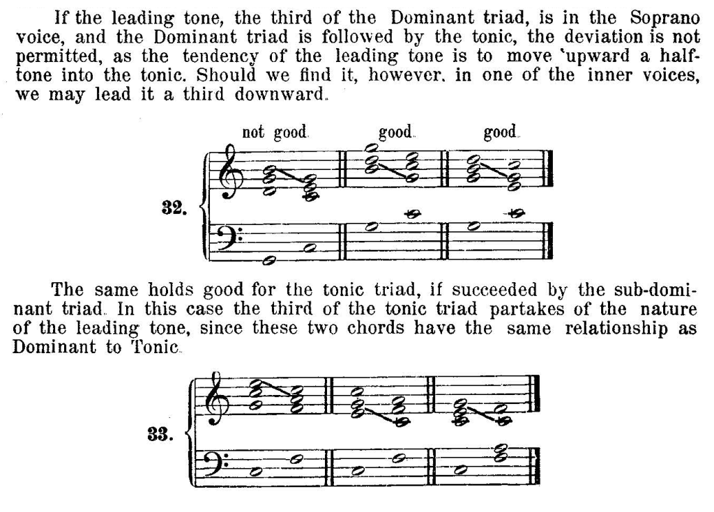 Z powyższych reguł wynika istotna przesłanka: głosy środkowe prowadzone są płynnie, z przewagą powtarzania dźwięków na tej samej wysokości lub krokiem sekundowym. Skoki większe od tercji zdarzają się wyjątkowo. A przekraczające kwintę prawie zawsze zwiastują zadomowienie się jakiegoś błędu.