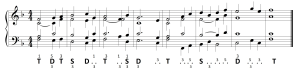 Uważny czytelnik zwrócił pewnie uwagę na sopranową klamrę w pierwszym takcie, która obejmuje TS. To nie błąd. W skali majorowej tetrachord górny i dolny mają identyczną budowę: sekunda mała – dźwięk prowadzący – występuje między VII i VIII oraz III i IV stopniem. Takie stanowisko wyraża wprost Piotr Czajkowski (ostatni akapit):