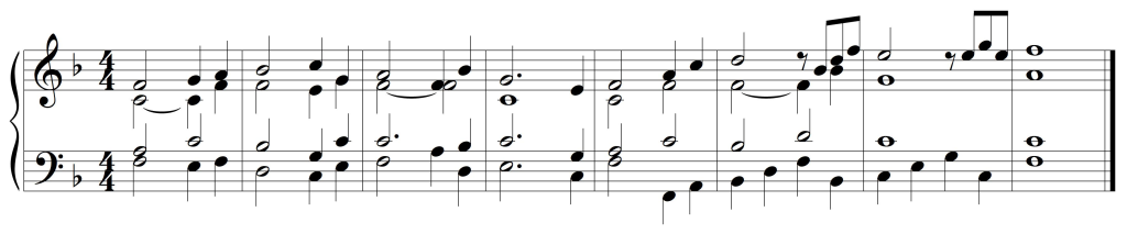Następującą melodię będziemy rozpatrywać tylko w tonacji F-dur (w tonacji d-moll dźwięk c nie występuje):