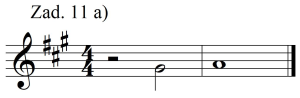 Kolejną sprawą jest uzupełnienie dwugłosu nadrzędnego (określenie Jana Gawlasa). Są to głosy najlepiej słyszalne w całej konstrukcji, więc powinny być melodyjne. Uzupełnianie rozpoczynam od wykorzystania pewnej ukrytej podpowiedzi.