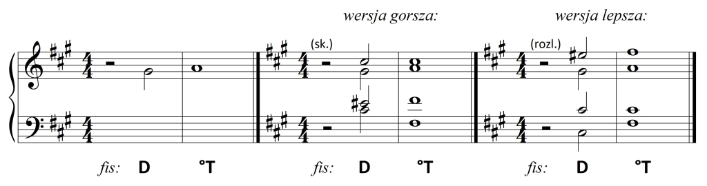 W taktach nr 2 i 3 występują trzy współbrzmienia, ale do czynienia mamy z dwiema różnymi funkcjami. Ten argument może pomóc w wyborze optymalnej wersji, na przykład: