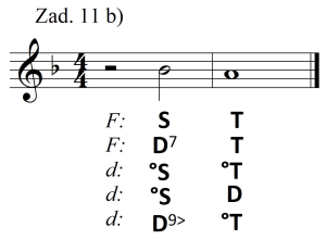 • następnie mamy podaną treść harmoniczną (w postaci symboli funkcyjnych), którą należy rozpisać w chóralnym układzie czterogłosowym,