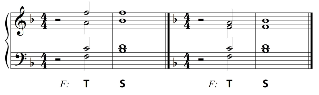 Jak pamiętamy, nie każda funkcja harmoniczna ma jednakową „moc”. Na pierwszym miejscu jest tonika – akord, który jest ośrodkiem danej tonacji i punktem odniesienia dla wszystkich pozostałych. Wskazane jest więc eksponowanie tego współbrzmienia. Z tego też względu, ilekroć mamy wątpliwość odnośnie do rytmicznego rozplanowania przebiegu harmonicznego, tonikę opracujmy nutą o dłuższej wartości.