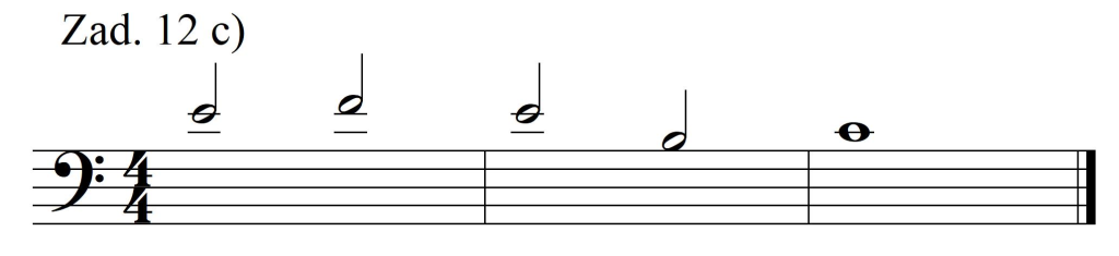 Najłatwiej poradzić sobie z taktem ostatnim: w metrum 4/4 jedynie cała nuta wypełni ten takt. Równie łatwo przedstawia się takt 6. – z czterokrotną zmianą układu: najprościej wykorzystać cztery ćwierćnuty.