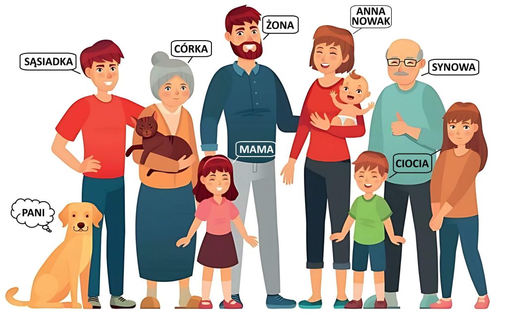 Weźmy przykładową Annę Nowak. Kiedy przeanalizujemy, jakie FUNKCJE pełni w swojej rodzinie, okaże się, że – będąc niezmiennie tą samą osobą – każdy postrzega ją i zwraca się do niej nieco inaczej.