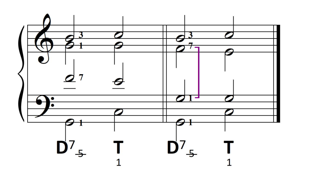 Niektórzy dopuszczają zdwojenie 7, lecz wymaga to dużej ostrożności w rozwiązaniu i brzmi dużo gorzej, niż z podwojoną 5.